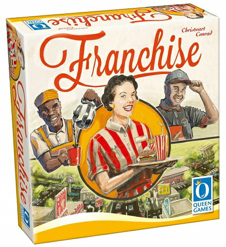 フランチャイズは1960年代のアメリカを舞台に、自分のフランチャイズをどんどん広げていく2~5人用のゲームです。各都市でエリアマジョリティを競うのですが、得点化された都市は収入がなくなってしまうので、終盤になるほど収入がなくなっていきます。どのタイミングで得点化するかの見極めが重要なゲームです。